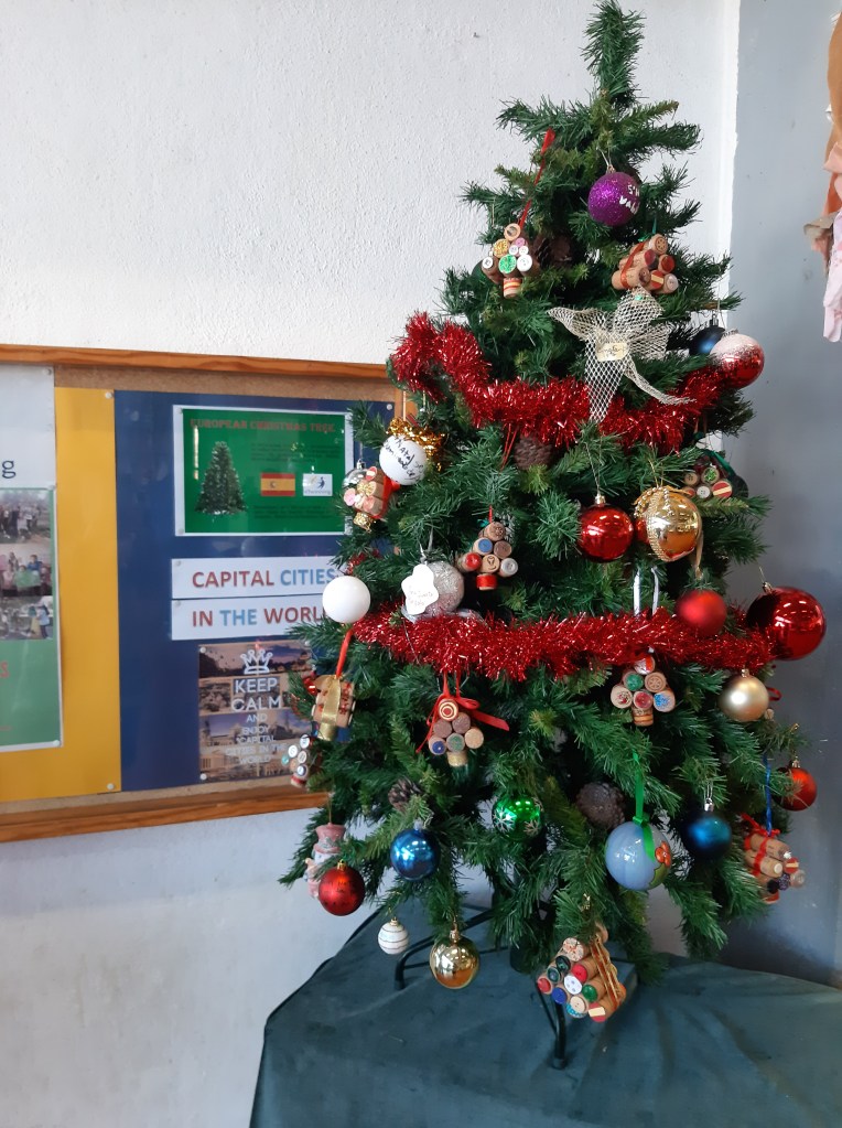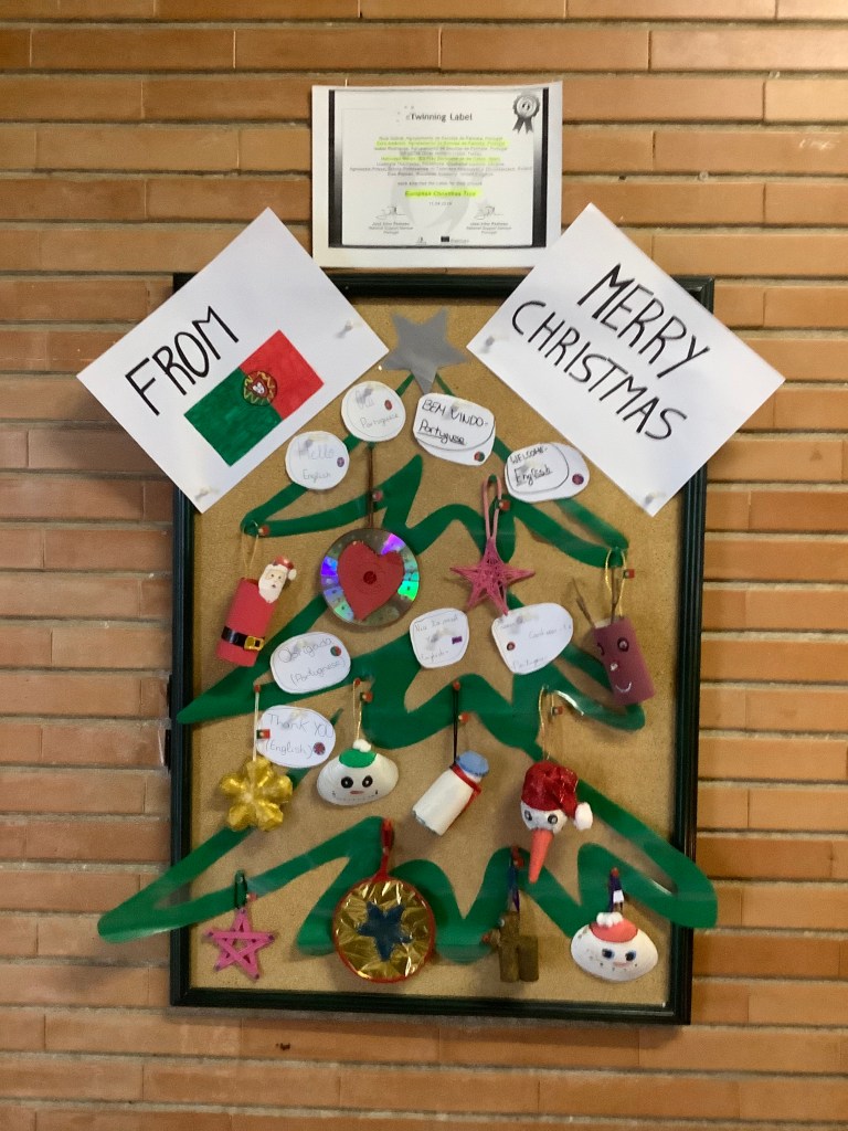 Hemos acabado este proyecto con la exposición de los objetos que nos ha enviado el colegio portugués Escola Básica Hermenegildo Capelo, en un árbol navideño.
